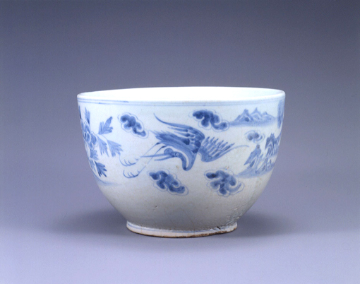 | 구부 (口部)가 바로 세워지고 운두가 높은 큰 사발(沙鉢)로 굽다리는 낮다. 청화(靑畵)로 내저(內底)에 활짝 핀 정교한 화문(花文)을 외면에는 위 아래로 선을 두르고 구름과 학(鶴), 산(山)과 노송(老松), 사슴(鹿)과 불로초(不老草), 삼산(三山)과 대나무(竹)와 모란문(牡丹文)을 돌아가면서 원숙한 솜씨로 나타내었다. 특히 장생문(長生文)의 일종이 많아 19세기에 널리 쓰였던 무늬들이 잘 나타나 있다. 유색(釉色)은 담청(淡靑)을 머금은 백자유(白磁釉)로 전면에 시유되었다. 광주 분원요(廣州 分院窯)에서 제작된 이 사발은 비교적 큰 것으로 회화적인 필치로 전개되는 장생문과 모란(牧丹)ㆍ竹ㆍ三山의 문양은 단정한 그릇의 모습과 잘 어울리고 있다.