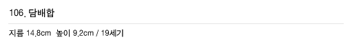 담배를 담는 용기 . 한자어로는 연합(煙盒)이라 하며, 담배서랍·초합(草盒) 등으로도 불린다. 조선시대 중기에 담배가 수입되면서 퍼지기 시작한 담배합은 목재·석재·금속재, 도자기형 등으로 만들어 그 형태와 종류가 다양하다. 이 담배합은 도자기형태로 된 것으로 위에는 壽자형의 도안이 그려져 있고 아래에는 囍자형의 길상문이 도안되어 있는 것이 특징이다.