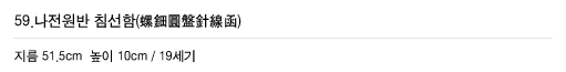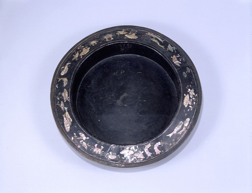피나무 (?木)를 용재로 하여 선차(旋車)로 돌려 깎아 만들어졌는데, 안쪽은 움푹 들어갔고, 주둥이 둘레에 비스듬히 넓은 전을 돌려 놓았고 그 표면에 물고기(출세), 게(다산), 새우(장수)와 조개, 연꽃이 군데군데 핀 연당(蓮塘)의 風景을 자개를 이용하여 무늬를 나타내었다. 이 그릇은 여인들이 침선(針線)을 할때 침선구(針線具)를 담는 반짇고리의 용도이다.