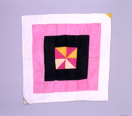이 보자기는 옷감 조각을 이어 만든 조각보이다 . 조각보는 옷을 만들고 남은 조각을 이용해서 만들기도 하고 염색한 옷감을 적당히 배색해서 기하학적인 문양을 구성하기도 한다. 이 조각보는 흰색 무명, 검은색과 분홍색 명주 등을 배색해 만든 것이다. 즉 五方色에 가깝게 배열하였다. 가장자리를 흰색 무명으로 크게 두르고 안쪽으로 갈수록 작은 사각형이 되도록 구성했다.