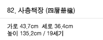 | 서책 (書冊)을 수장하는 책장으로 다른 장과 다르게 책장의 문턱이 거의 없게 평평하게 만드는 것이 일반적이다. 이 책장은 여러 가지 나무를 사용하여 만든 것으로 특히 문짝 앞판의 뒷면, 즉 내부에는 오동나무를 써서 해충과 습기를 막았다. 2층과 4층 위에는 하나의 긴 서랍으로 꾸며졌다. 각 여닫이 문짝의 나무 무늬는 서로 대칭되게 꾸며졌으며 중앙부에 자물쇠가 붙었다. 기둥이 내려와 짧은 기둥을 이루어 바닥에서 띄어 놓았으며 앞면에는 얇게 風穴을 주어 꾸며졌다.