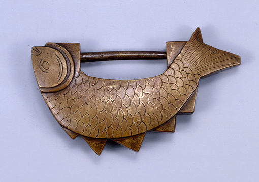 물상형자물쇠의 일종으로 기본적인 구성은 대롱자물쇠와 비슷하나 붕어 등 특정한 동식물의 모습을 구체적으로 닮게 제작한 것인데 붕어는 多産 (특히 男兒의 생산)을 통한 家門의 繁昌과 豊饒, 그 밖에 生命力, 健康 등을 상징한다.