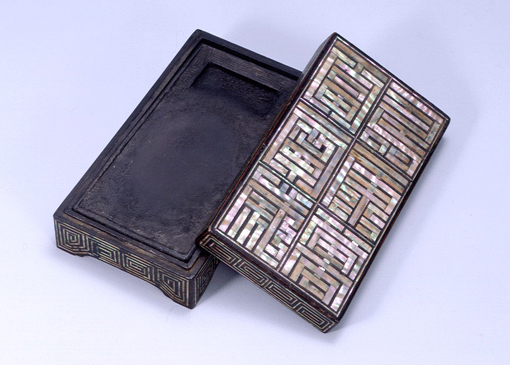 상자는 은행나무 판재로 짜여졌는데 뚜껑의 윗면에는 자개로 象嵌하여 壽 , 福, 康, 寧, 富, 貴 등 한국에서 일반적으로 쓰이는 길상적인 문자무늬를 넣었다. 뚜껑의 측면은 雷紋을 상감하여 回裝을 돌렸고, 밑부분은 風穴이 있어 바닥에서 띄어졌다. 벼루는 소형으로 윗부분에도 雷紋을 양각하여 놓았다.