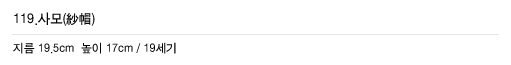 | »ç¸ð´Â ÀϹÝÀûÀ¸·Î Á¶¼±½Ã´ë ¹é°ü (ÛÝί)ÀÌ ÁÖ·Î »óº¹ ( ßÈÜ× )¿¡ Âø¿ëÇÏ´ø °ü¸ðÀÌ´Ù. Á¶¼±Èıâ ÀÌÈÄ¿¡´Â ¼¹Îµµ È¥·Ê¶§¿¡´Â »ç¸ð¸¦ Âø¿ëÇÒ ¼ö ÀÖµµ·Ï Çã¿ëµÇ¾ú´Ù. »ç¸ð´Â µÚ°¡ ³ô°í ¾ÕÀÌ ³·Àº 2´Ü ¸ðÁ¤ºÎ(Ù¶ð¢Ý»)¸¦ ÀÌ·ç¸ç, µÞ¸é¿¡´Â °¢(ÊÇ)À» ´Þ°í ÀÖ´Ù. °Ñ¸éÀº Á×»ç(ñÓÞê)¿Í ¸»ÃÑÀ¸·Î Â¥°í ±× À§¸¦ »çÆ÷(ÞéøÖ)·Î ¾º¿ì´Âµ¥, »ç¸ð¶ó´Â ¸íĪÀº ¿©±â¼ À¯·¡µÈ °ÍÀÌ´Ù. ÀÌ »ç¸ð´Â Á¶¼± Èı⿡ ÀÌ¿ëµÈ È¥·Ê¿ë »ç¸ðÀÌ´Ù.