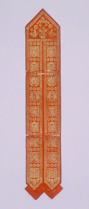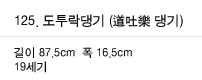 | µµÅõ¶ô´ó±â´Â ¿¹º¹°ú ÇÔ²² »ç¿ëÇÑ ¿¹Àå¿ë (çßíûéÄ) ´ó±âÀÌ´Ù. ÀÌ µµÅõ¶ô´ó±â´Â À§¿Í ¾Æ·¡ÂÊÀ» ¸ðµÎ Á¦ºñºÎ¸® ÇüÅ·Π¸¸µé¾îÁ® ÀÖ´Ù. ƯÈ÷ ¾Æ·¡ÂÊÀº µÎ °³·Î ³ª´©¾î »êó·³ ¸¸µç ÈÄ ±× ¾È¿¡ ¸¶¸§¸ð²ÃÀÇ Àå½ÄÀ» ³Ö¾î ¸¶¹«¸®ÇÑ °ÍÀÌ´Ù. À§ÂÊ »ï°¢ ¸Ó¸®ºÎºÐ¿¡´Â ³ªºñ¿Í Ⱥ´À», ±×¸®°í ±× ¾Æ·¡ÂÊÀ¸·Î´Â ²É¡¤¿µÁö¡¤¼®·ù¡¤»õ¡¤µ¿ÀÚ(ÔÛí)¡¤º¹(ÜØ) µîÀÌ ±Ý¹ÚµÇ¾î ÀÖ´Ù. ¸ðµÎ ÜØ°ú Òýß§À» »ó¡ÇÏ´Â ±æ»ó¹®ÀÌ´Ù.