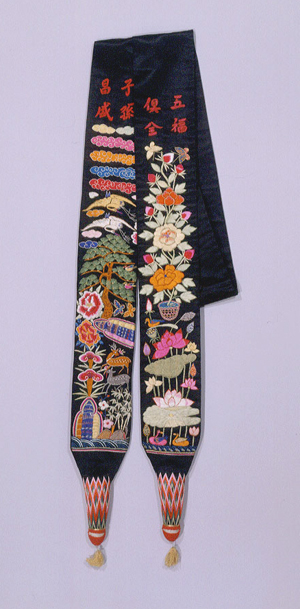 | °íÀÌ´ó±â´Â È¥·Ê ¶§ ½ÅºÎ°¡ ºñ³à¿¡ °É¾î »ç¿ëÇß´ø ¾Õ´ó±âÀÇ ÀÏÁ¾ÀÌ´Ù . ÁÖ·Î ¼ºÏ(à¤ÝÁ) Áö¹æ¿¡¼ »ç¿ëÇß´ø °ÍÀÌ´Ù. ÀÌ °íÀÌ´ó±â´Â °ËÀº»ö ¹«¹®´Ü(ÙíÚ£Ó°) ¹ÙÅÁ¿¡ °¢»ö °ß»ç(̵Þé)·Î ¼ö¸¦ ³õ¾Æ ¿Ï¼ºÇÑ °ÍÀÌ´Ù. ÇÑÂÊ ³¡¿¡´Â 'íáÝóãàü'À̶ó´Â ºÓÀº»ö ±Û¾¾ ¾Æ·¡·Î ±¸¸§°ú ¼Ò³ª¹«¡¤¿µÁö¡¤»ç½¿ µîÀÇ ä¨íþßæÀÌ ÀÖÀ¸¸ç ¹Ý´ëÂÊ¿¡´Â 'çéÜØÎüîï' ¾Æ·¡¿¡ ¸ð¶õ°ú ¿¬²É, ¿À¸® µîÀÇ ±æ»ó¹®ÀÌ ¼ö³õ¾ÆÁ® ÀÖ´Ù. ´ó±âÀÇ ¾çÂÊ ³¡Àº ºÀ ¸ð¾çÀ¸·Î ¿À¹Ç¶óÁ® ÀÖ°í »ö½Ç·Î ¸¸µç ´ÉÇü(Ò÷û¡)¹«´Ì°¡ Àå½ÄµÇ¾î ÀÖ´Ù. ±× ¹ØÀ¸·Î ±¸½½°ú ¼ú Àå½ÄÀÌ º¸ÀδÙ.