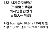 | Á×Àº »ç¶÷ÀÇ ³»¼¼ »ýȰÀ» À§ÇØ ºÎÀåµÈ ±â¹°·Î¼ ¸í±â´Â »ï±¹½Ã´ëºÎÅÍ Á¶¼±½Ã´ë¿¡ °ÉÃÄ Á¦À۵Ǿú´Âµ¥ , ÀǺ¹°ú ¸Ó¸® ¸ð¾çÀÌ Áß±¹Ç³ÀÎ ÀÌ µ¿ÀÚÀι°Çü ¸í±â´Â Á¶¼± ¸»±â¿¡ ¸¸µé¾îÁø °ÍÀ¸·Î º¸ÀδÙ. ÀüüÀûÀ¸·Î ´Ù¼Ò Åõ¹ÚÇÑ Á¶ÇüÀÌÁö¸¸ ¾ó±¼ Ç¥Çö°ú ¹ßÀÇ ¹¦»ç°¡ ¼¶¼¼Çϰí, µ¿ÀÚ´Â µÎ ¼ÕÀº ¸ð¾Æ¼ ȦÀ» µå´Â µíÇÑ ÀÚ¼¼·Î ¼ ÀÖ´Ù. ÅÂÅä´Â Á¤¼±µÇ¾ú°í, Àü¸é µÎ²®°Ô ½ÃÀ¯µÈ ¹éÀÚÀ¯´Â û¹é»öÀ» ¶ì°í Àִµ¥, ¿ëÀ¶ »óŰ¡ ¾çÈ£ÇÏÁö¸¸ ºÎºÐÀûÀ¸·Î ¹¶Ä¡°í °¥¶óÁ³´Ù. ÀÌ¿Í °°Àº ¸í±â´Â ¿©·¯Á¡ÀÌ ÇÑ ¼¼Æ®¸¦ ÀÌ·ç¾î ¹¦Áö¼®°ú ÇÔ²² ºÎÀåµÇ¾ú±â¿¡ ±ÍÁßÇÑ Æí³â ÀڷḦ Á¦°øÇϰí Àִµ¥, ÀÌ µ¿ÀÚ¸í±â ¹éÀÚ´Â ÅÂÅä¿Í À¯¾àÀÌ Á¶¼± ¸»±â ¹éÀÚÀÇ ¼º°ÝÀ» ¶ì°í ÀÖ´Ù.