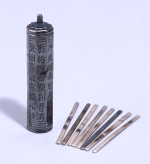 | »êÅëÀ» »ç¿ëÇÏ¿© Àΰ£ÀÇ ±æÈäȺ¹À» ÆÇ´ÜÇÏ´Â Á¡¹ý¿¡ »ç¿ëÇÏ´Â °ÍÀÌ´Ù . ÀÌ Á¡¹ýÀº »êÅë¿¡ »ê¸ñ ( ß©ÙÊ ) ¶Ç´Â »ê°¡Áö¸¦ ¿©´ü °³ ³Ö¾î µÎ°í »Ì¾Æ¼ È¿(ý¡)¸¦ ¾ò°í, ±¥(ÎÏ)¸¦ ¸¸µé¾î ¿ª¼ ( æ¶ßö )¿¡ ÀûÈù ±¥¹®(ÎÏÙþ)À¸·Î ±æÈäȺ¹À» ÆÇ´ÜÇÏ´Â °ÍÀÌ´Ù. Á¡Åë¾ÈÀÇ 8°³ÀÇ »ê¸ñÀº 1¿¡¼ 8±îÁö ´«±ÝÀ» »õ±â°í ÀÖ´Ù. Á¡Ä¡´Â ¹æ¹ýÀº ¸ÕÀú »ó À§¿¡ ÇâÀ» ÇÇ¿ì°í ÁÖ¹® ( ñ±Ùþ )À» ¿Ü¿î µÚ¿¡, ¹®º¹(ÙýÜÔ)ÇÏ´Â »ç¶÷ÀÇ ¼Ò¿øÀ» ¸»ÇÑ ´ÙÀ½, »êÅëÀ» Èçµé¾î »ê¸ñÀÌ ¼¯¾îÁöµµ·Ï ÇÑ µÚ »êÅëÀÇ ±¸¸Û¿¡¼ »ê¸ñÀ» Çϳª¾¿ ²¨³»¼ »õ°ÜÁ® ÀÖ´Â ´«±ÝÀ» Àаí, ¿©¼¸ ¹ø µÇÇ®ÀÌÇÏ¿© ±¥¸¦ ¸¸µé¾î Á¡À» Ä£´Ù. ÀÌ Á¡ÅëÀº ÆÈ¸éÀ¸·Î µÈ °ÍÀ¸·Î À§¿Í ¾Æ·¡¿¡´Â ÆÈ±¥°¡ ÀüºÎ »õ°ÜÁ® ÀÖ°í, ÆÈ¸é¿¡ °¢±â Çѹ®ÀåÀÇ ±ÛÀ» »õ°Ü ³õ¾Ò´Âµ¥ ¸ðµÎ ÆÈ±¥¿Í °ü·ÃÀÌ ÀÖ´Â ¹®±¸µéÀÌ´Ù.